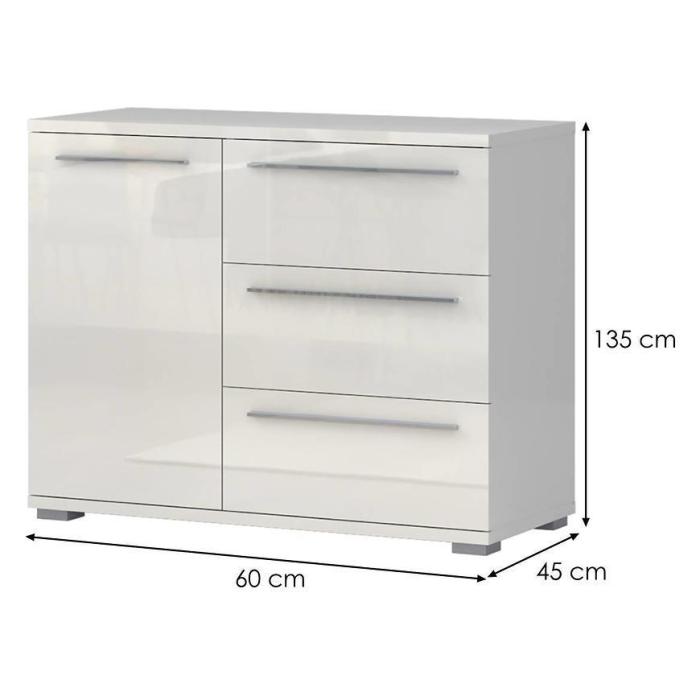 Komoda z kolekcji Piano to doskonała propozycja do pokoju dziennego i salonu. Doskonale sprawdzi się również w sypialni. Posiada trzy pojemne szuflady i zamykaną szafkę dzięki którym zyskujemy dodatkowe miejsce do przechowywania i uporządkowania przestrzeni. Fronty i korpusy wykonane z płyty wiórowej lakierowanej. Komoda Piano oferuje funkcjonalne wnętrze, a ponadto wyróżnia się nowoczesnym stylem.