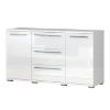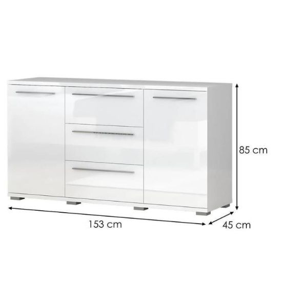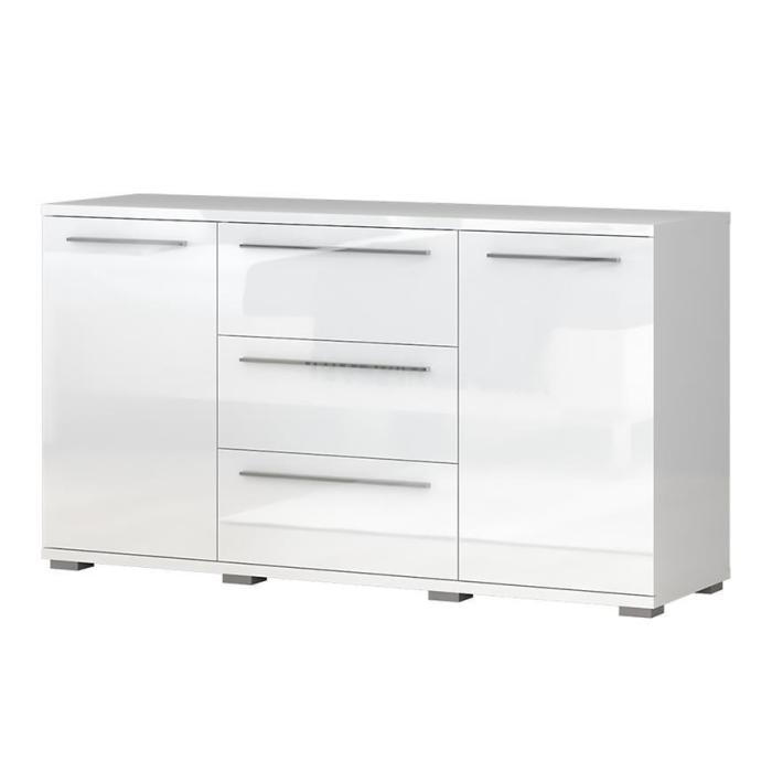 Komoda z kolekcji Piano to doskonała propozycja do pokoju dziennego i salonu. Doskonale sprawdzi się również w sypialni. Posiada trzy pojemne szuflady i dwie zamykane szafki, dzięki którym zyskujemy dodatkowe miejsce do przechowywania i uporządkowania przestrzeni. Fronty i korpusy wykonane z płyty wiórowej lakierowanej. Komoda Piano oferuje funkcjonalne wnętrze, a ponadto wyróżnia się nowoczesnym stylem.