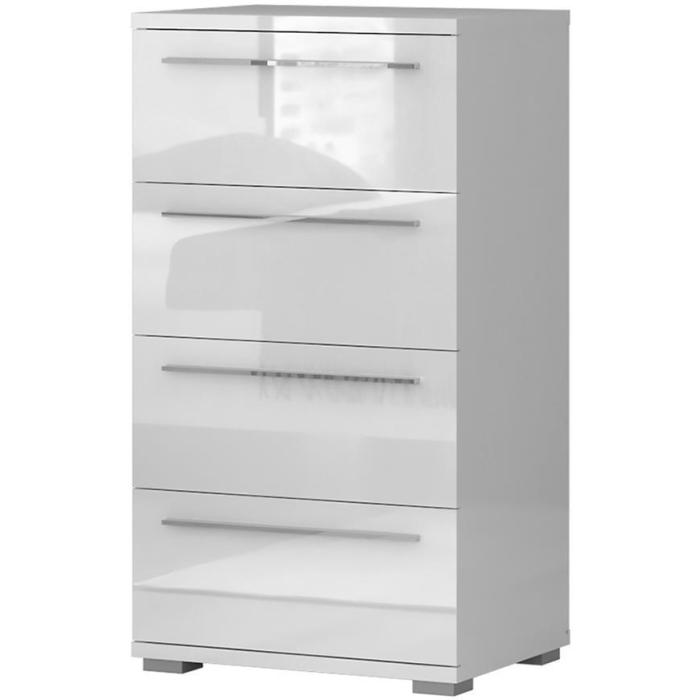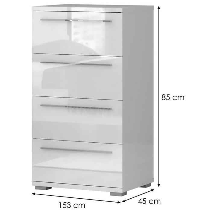 Komoda z kolekcji Piano to doskonała propozycja do pokoju dziennego i salonu. Doskonale sprawdzi się również w sypialni. Posiada trzy pojemne szuflady i drzwi uchylne, dzięki którym zyskujemy dodatkowe miejsce do przechowywania i uporządkowania przestrzeni. Fronty i korpusy wykonane z płyty wiórowej lakierowanej. Komoda Piano oferuje funkcjonalne wnętrze, a ponadto wyróżnia się nowoczesnym stylem.