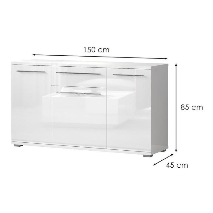 Komoda z kolekcji Piano w kolorze white to przede wszystkim nowoczesność i funkcjonalność w jednym. Mebel doskonale sprawdzi się w każdym pomieszczeniu. Materiał wykonania to płyta MDF lakierowana/płyta wiórowa laminowana. Komoda posiada szufladę i trzy szafki dzięki czemu ma łatwy dostęp do wnętrza. Wygląd mebli jest nowoczesny, a zarazem uniwersalny. Mebel będzie pasował do wielu pomieszczeń jak np. jadalni czy pokoju dziennego. Meble jest bardzo pojemny, dlatego sprawdzi się w każdym pomieszczeniu - zarówno w sypialni, pokoju dziennym, młodzieżowym, czy też salonie. Mebel do samodzielnego montażu.