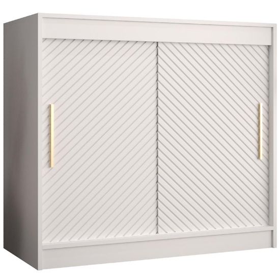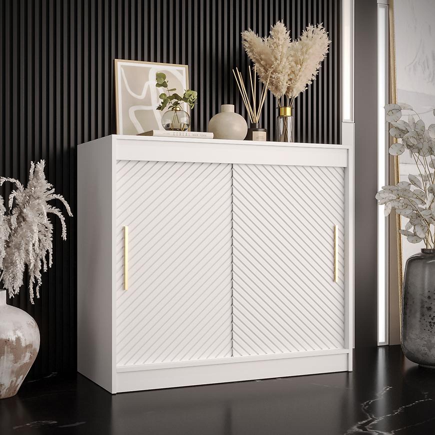 Białę matowe fronty dwudrzwiowe nadają komodzie łagodnego wyglądu, dodając jednocześnie elegancji i nowoczesności. Komponują się one z białym matowym korpusem, tworząc efektowną kompozycję, która przyciąga uwagę.