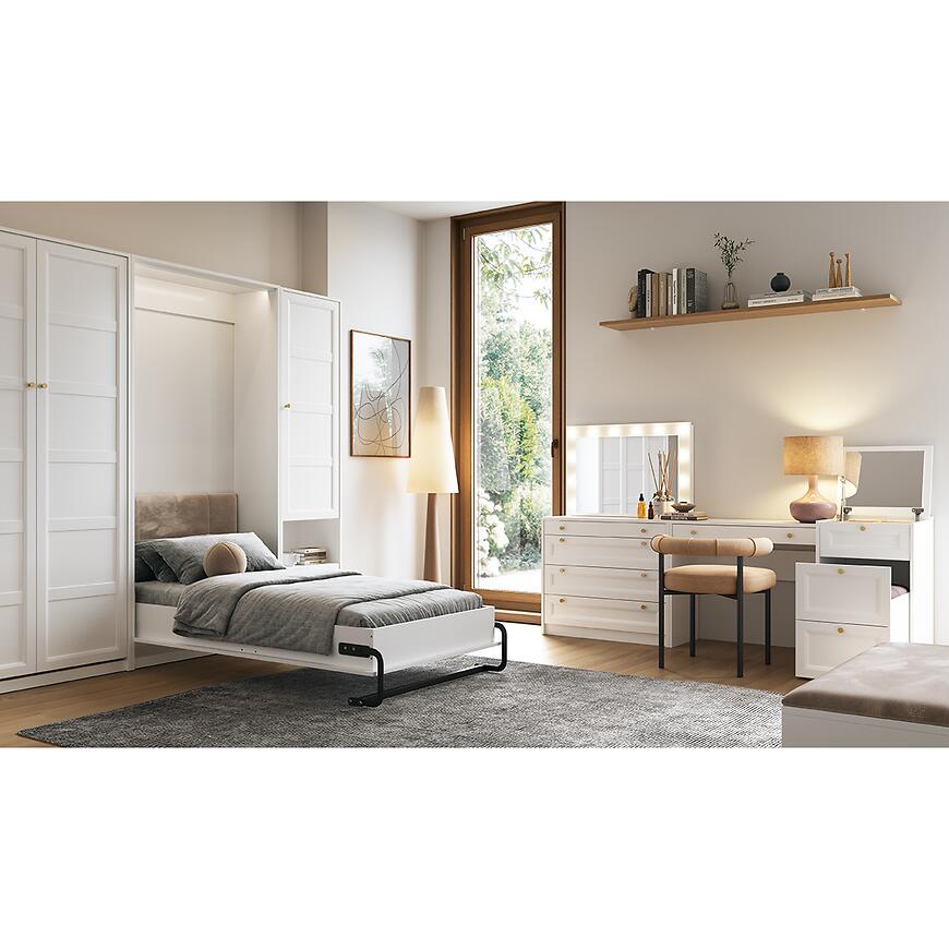 W kolekcji REL do sypialni znajduje się również elegancka toaletka z szufladami, która pozwala stworzyć prywatną strefę urody. Dzięki przemyślanemu układowi szuflad wszystkie kosmetyki i akcesoria można mieć zawsze pod ręką, zachowując porządek i estetykę przestrzeni.