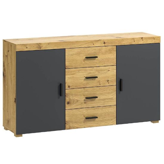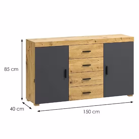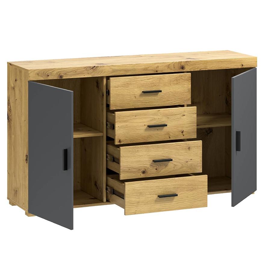 Komoda Remos 2D4S w eleganckim połączeniu artisanu i grafitu to nie tylko praktyczne rozwiązanie do przechowywania, ale również stylowy element wystroju wnętrza. Zaprojektowana w nowoczesnym stylu, komoda ta doskonale sprawdzi się w każdym nowoczesnym pomieszczeniu, dodając mu charakteru i funkcjonalności.