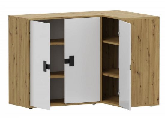 - Komoda rogowa trzydrzwiowa Index 09 dąb artisan/biały połysk
