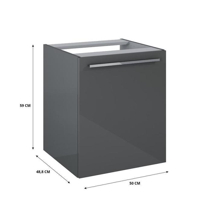 Kolekcja mebli łazienkowych Royal to eleganckie meble, które świetnie wpiszą się w nowoczesne wnętrza. Meble wykonane są z wysokiej jakości materiałów - płyty wiórowej pokrytej lakierem w kolorze antracytu. Meble dodatkowo wyposażone są w system samodomykania co zwiększa komfort użytkowania.