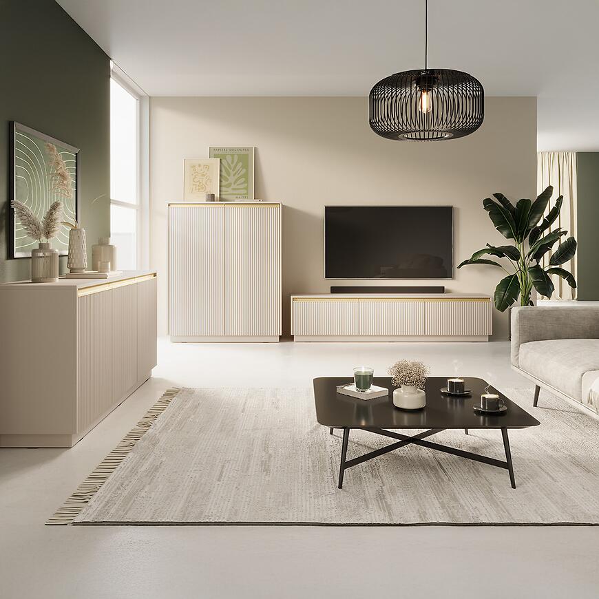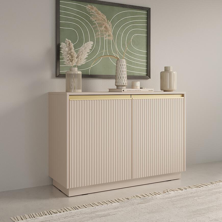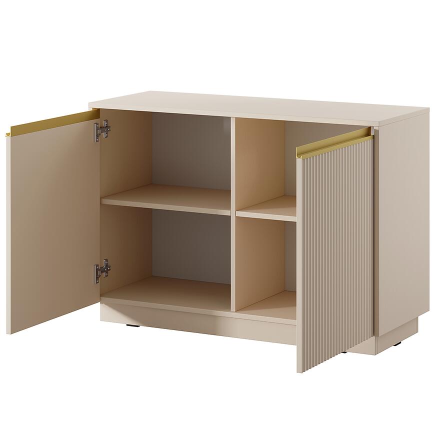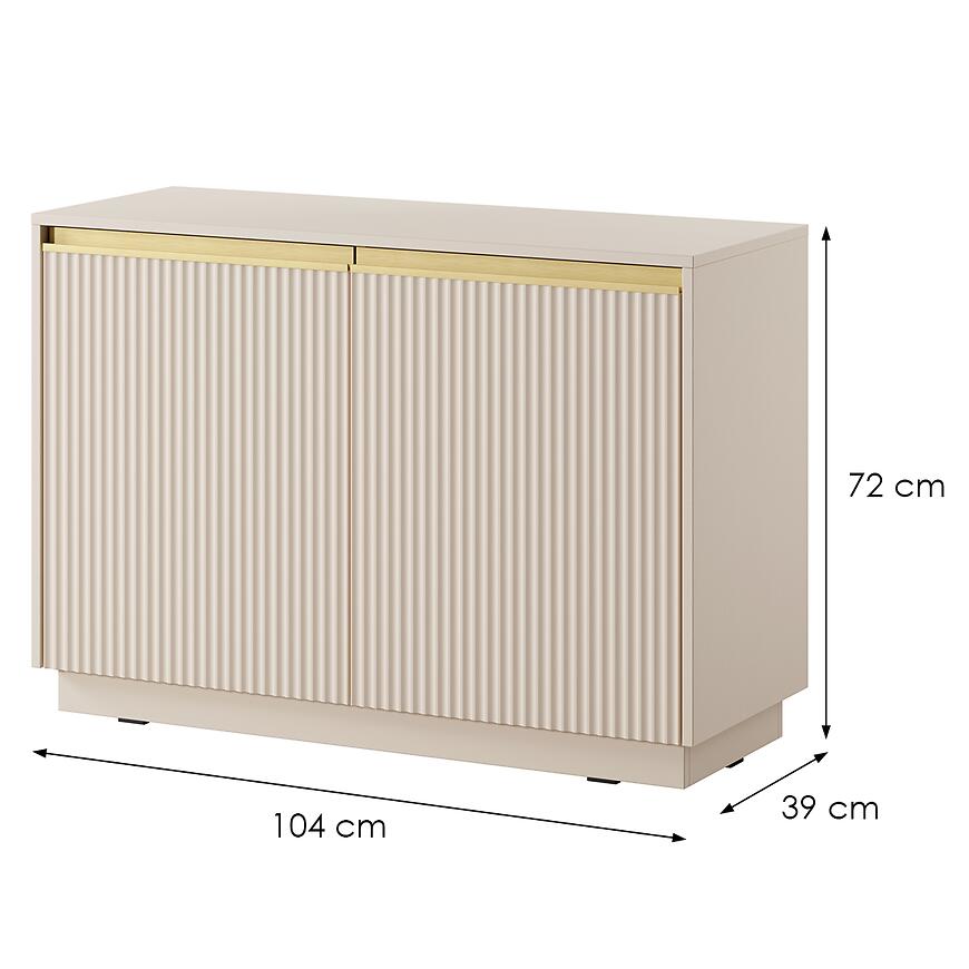 Komoda Royal K103 Beż Piaskowy to nowoczesny i elegancki mebel wykonany z laminowanej płyty wiórowej z matowym wykończeniem frontów i korpusu. Model dwudrzwiowy o wymiarach (103x72x39 cm) zapewnia praktyczną przestrzeń do przechowywania. Minimalistyczny design łączy trwałość z funkcjonalnością. To połączenie stylu, jakości i praktyczności, które wyróżni każde wnętrze.