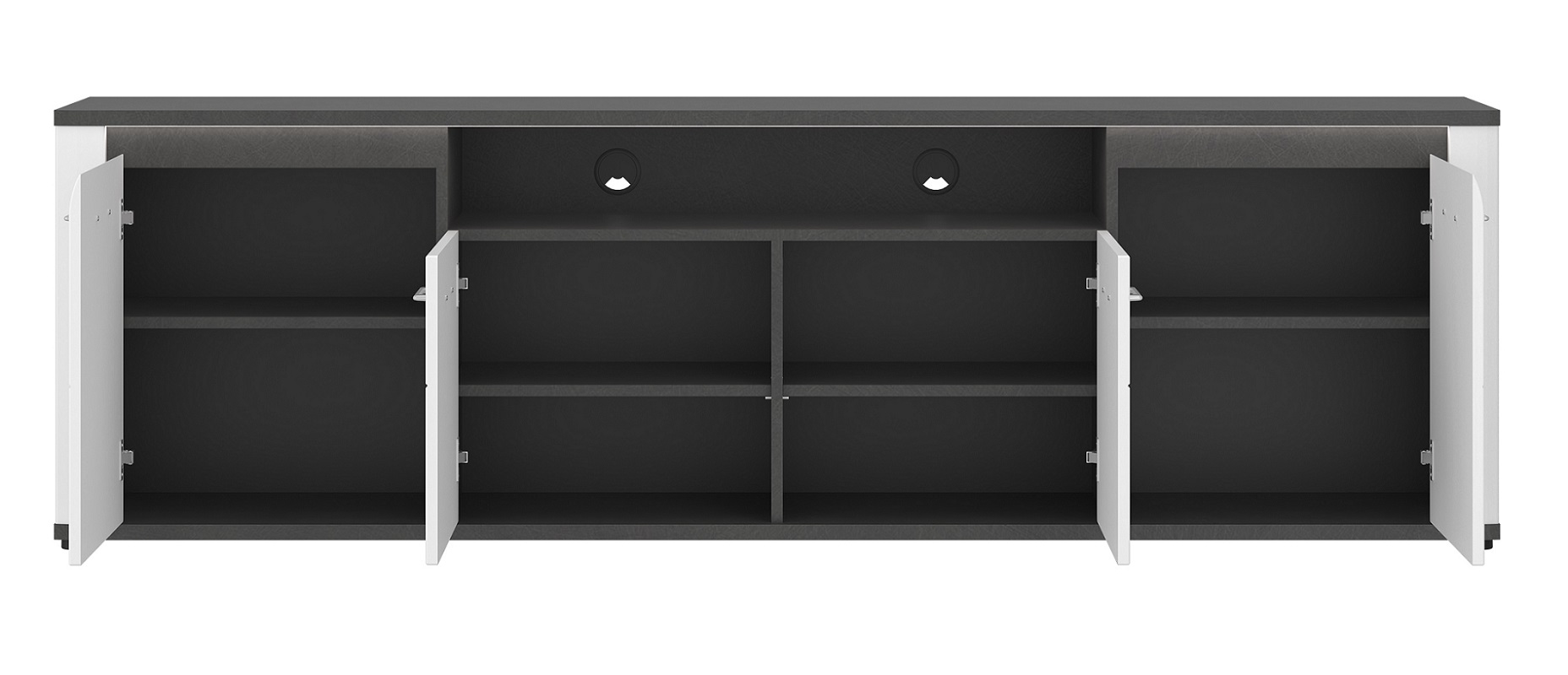 Komoda RTV Alassio ALSF03 to propozycja, która spełni oczekiwania zarówno pod kątem estetyki, jak i funkcjonalności. Z myślą o potrzebach nowoczesnych wnętrz, komoda została wyposażona w cztery praktyczne drzwi, za którymi znajdziesz sporo miejsca na przechowywanie najważniejszych przedmiotów. Dzięki niej w łatwy sposób zorganizujesz przestrzeń wokół swojego telewizora, zyskując dodatkowe miejsce na kolekcję filmów, sprzęt audio-wideo czy drobne akcesoria, które zazwyczaj zalegają na wierzchu.