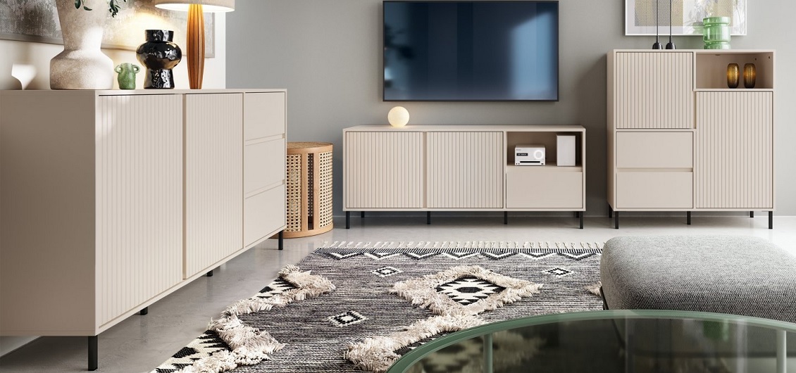 Avenale zachwyca detalami. Pionowe ryflowania nadają meblom rytmiczny, niepowtarzalny charakter, a w połączeniu z gładkimi frontami MDF tworzą elegancki, nowoczesny efekt. Kolekcja dostępna jest w trzech starannie dobranych wersjach kolorystycznych – od subtelnych, jasnych tonów po bardziej wyraziste, kontrastowe zestawienia. Dzięki temu każdy może dopasować meble do swojego gustu i stylu wnętrza.
