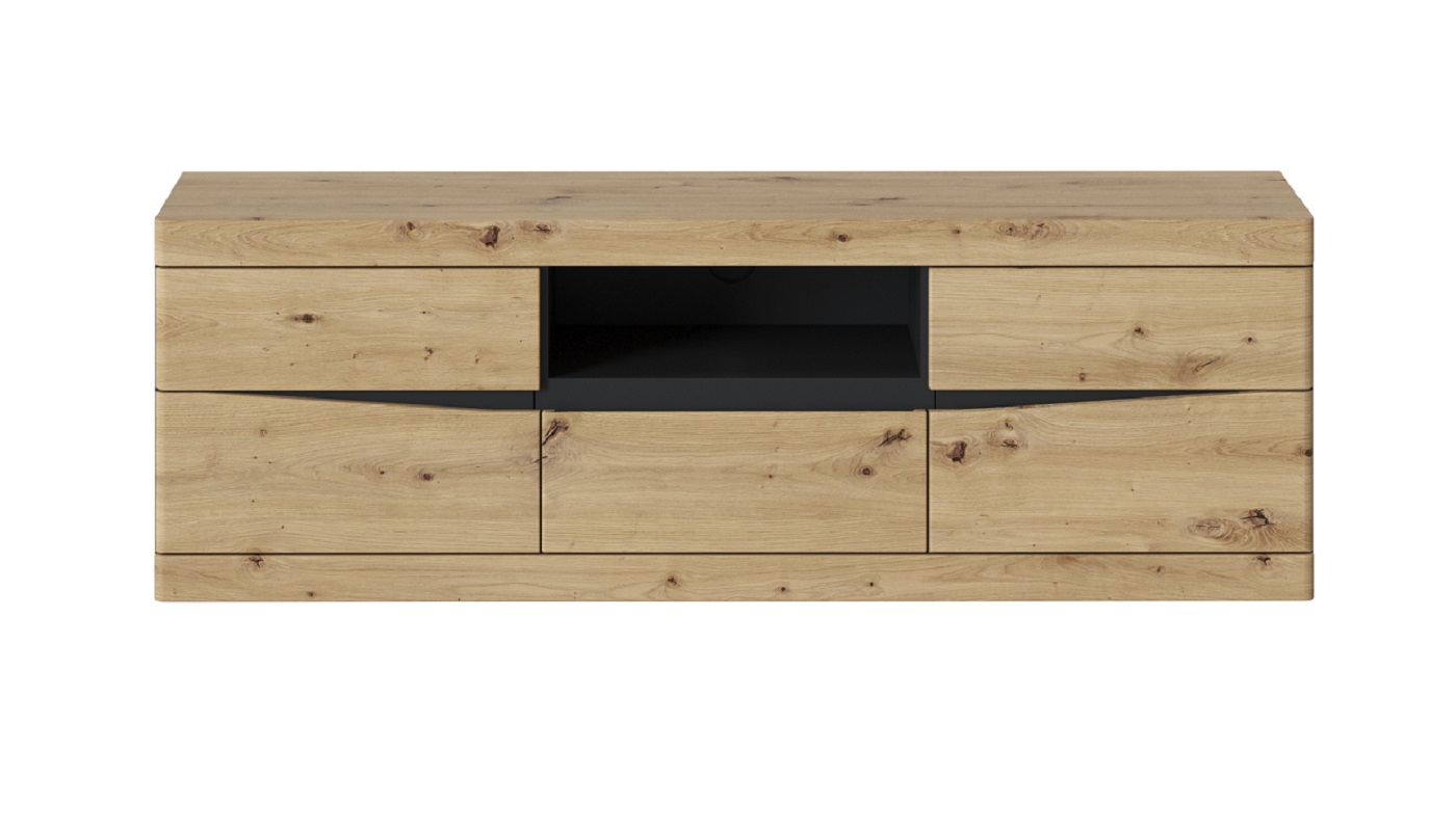 Komoda jest dostępna w wybarwieniu dąb artisan, które w połączeniu z antracytem tworzy harmonijną kompozycję kolorystyczną. Ta kombinacja dodaje wnętrzu nowoczesnego charakteru i sprawia, że komoda Turino TURF02 staje się stylowym akcentem w Twoim pomieszczeniu.