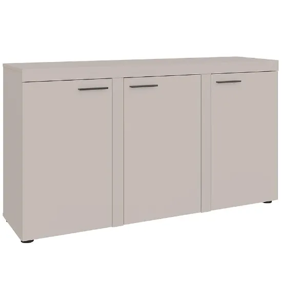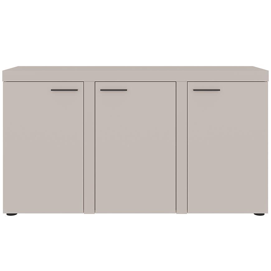 Komoda Rumba 3F BP22 w kolorze beż piaskowy to elegancki i funkcjonalny mebel, który wprowadza nowoczesny charakter do salonu, sypialni lub przedpokoju. Prosta forma i matowe wykończenie frontów nadają komodzie lekkości i subtelnej elegancji, a jasny, neutralny odcień beżu wprowadza przytulny akcent do wnętrza.