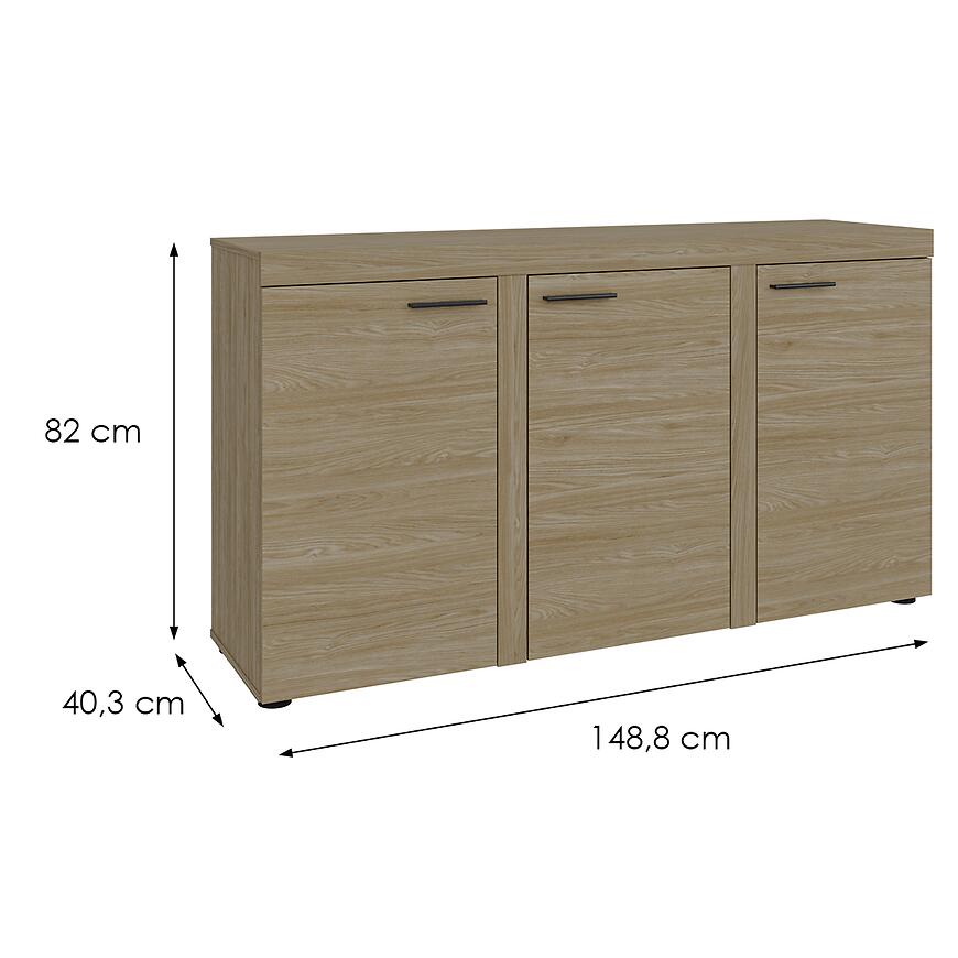 Trzydrzwiowa konstrukcja o szerokości 148,8 cm, wysokości 82 cm i głębokości 40,3 cm oferuje pojemne wnętrze do przechowywania tekstyliów, akcesoriów domowych czy dekoracji. Komoda Rumba 3F DO22 dąb olejowany to praktyczny mebel, który łączy estetykę z funkcjonalnością.