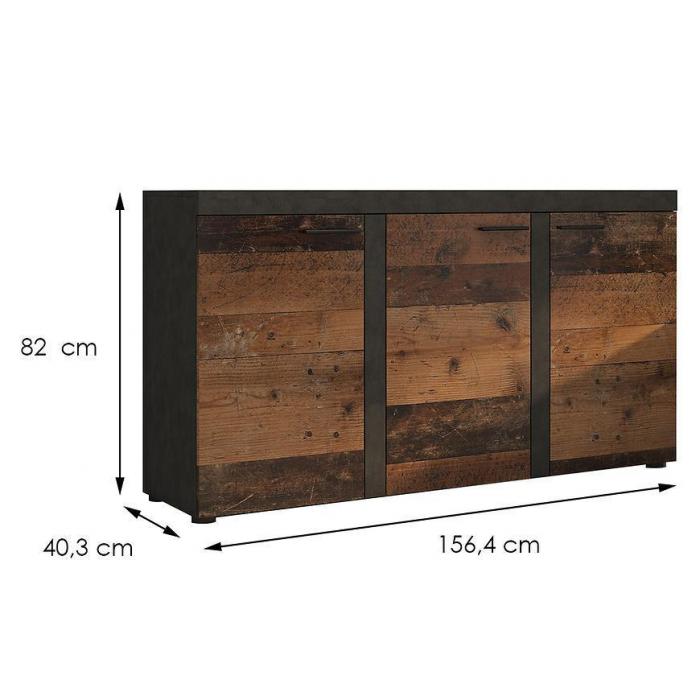 Doskonałym wyborem do pokoju dziennego będzie komoda w kolorze old style wood/matera z kolekcji Rumba, materiał wykonania to płyta laminowana. Komoda posiada trzy szafki dzięki czemu ma łatwy dostęp do wnętrza. Komoda dopełni również wystrój salonu, czy przedpokoju, stanowiąc wygodne miejsce do przechowywania mniejszych i większych rzeczy. Mebel do samodzielnego montażu.