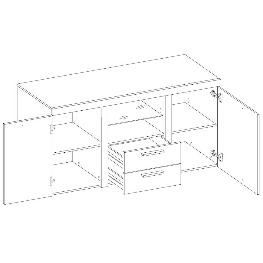Jej matowe wykończenie nadaje meblowi nowoczesny wygląd, jednocześnie zachowując subtelną elegancję. Konstrukcja komody opiera się na wysokiej jakości płycie wiórowej laminowanej, co gwarantuje trwałość i stabilność.