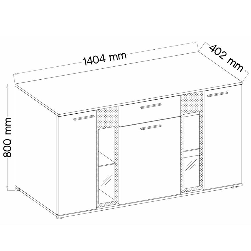 Komoda Salsa to nowoczesny mebel do pokoju dziennego lub salonu. Wpasuje się w wiele aranżacji w nowoczesnych wnętrzach jak również we wnętrzach klasycznych. Szafka posiada jedną szufladę i trzy drzwiczki dzięki czemu ma łatwy dostęp do wnętrza oraz odpowiednią przestrzeń do przechowywania odzieży lub innych przedmiotów. Płyta wiórowa laminowana to materiał, z której wykonano komodę. Mebel do samodzielnego montażu.