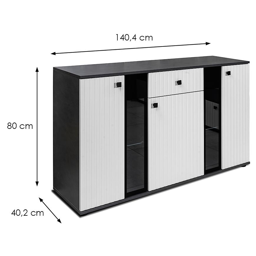 Komoda Salsa to nowoczesny mebel do pokoju dziennego lub salonu. Wpasuje się w wiele aranżacji w nowoczesnych wnętrzach jak również we wnętrzach klasycznych. Szafka posiada jedną szufladę i trzy drzwiczki dzięki czemu ma łatwy dostęp do wnętrza oraz odpowiednią przestrzeń do przechowywania odzieży lub innych przedmiotów. Płyta MDF/lamel I płyta wiórowa laminowana to materiał, z której wykonano komodę. Mebel do samodzielnego montażu.