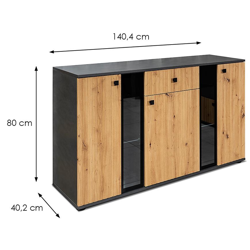 Komoda Salsa to nowoczesny mebel do pokoju dziennego lub salonu. Wpasuje się w wiele aranżacji w nowoczesnych wnętrzach jak również we wnętrzach klasycznych. Szafka posiada jedną szufladę i trzy drzwiczki dzięki czemu ma łatwy dostęp do wnętrza oraz odpowiednią przestrzeń do przechowywania odzieży lub innych przedmiotów. Płyta MDF/lamel I płyta wiórowa laminowana to materiał, z której wykonano komodę. Mebel do samodzielnego montażu.