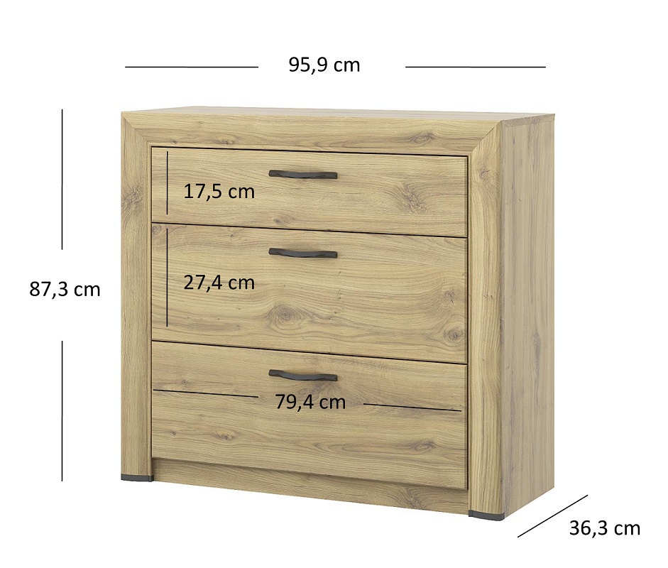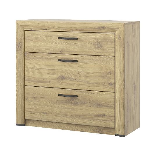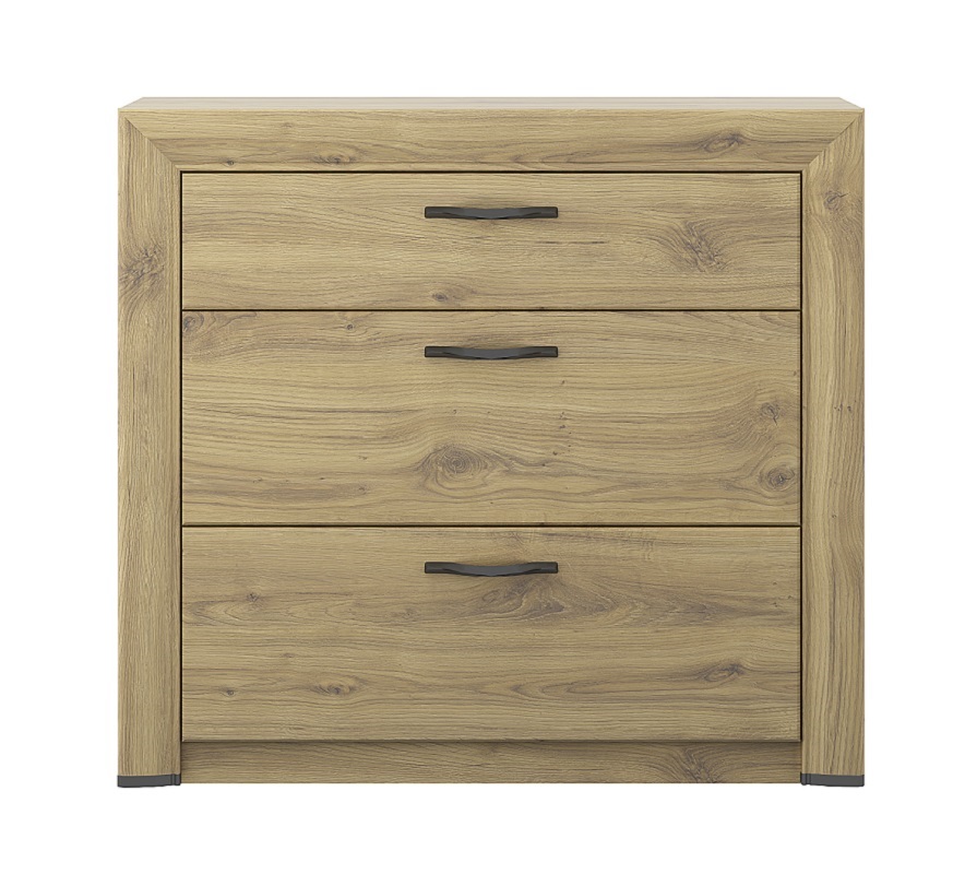 Wysoka jakość materiałów użytych do produkcji komody gwarantuje jej trwałość i odporność na uszkodzenia. Płyta meblowa laminowana jest łatwa w utrzymaniu czystości, co sprawia, że komoda Sapori 3S zachowuje swój nieskazitelny wygląd na długi czas. Dodatkowym atutem są metalowe uchwyty, które nie tylko pełnią funkcję praktyczną, ułatwiając otwieranie i zamykanie szuflad, ale także estetycznie komponują się z całością mebla.
