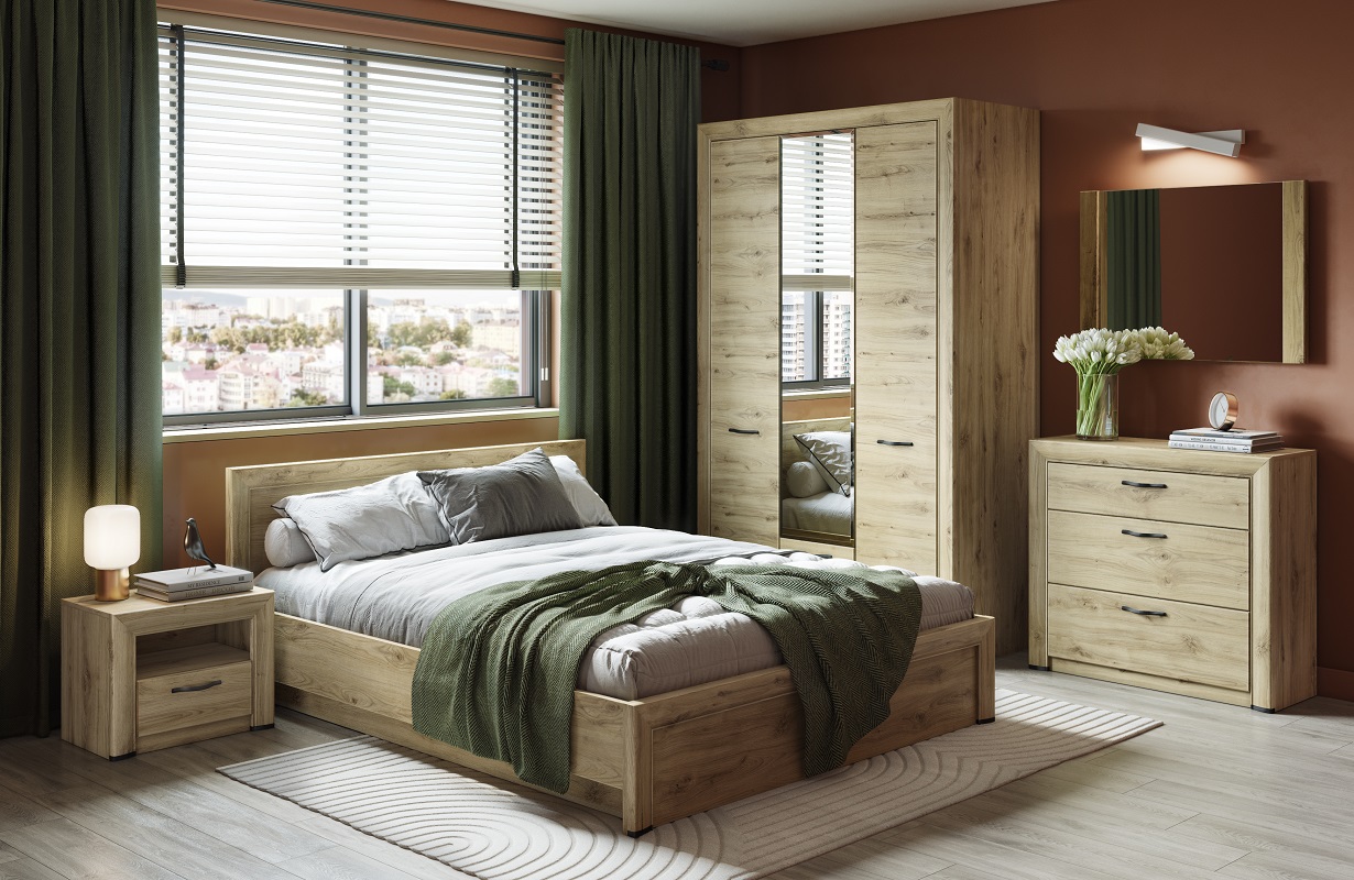 Komoda Sapori 3S to perfekcyjne połączenie funkcjonalności, elegancji i solidności. Wykonana z trwałej płyty meblowej laminowanej, ta komoda reprezentuje najwyższy standard jakości w dziedzinie mebli. Jej kolor dąb navarra w matowym wykończeniu nadaje wnętrzu nie tylko ciepła, ale także subtelnej finezji.