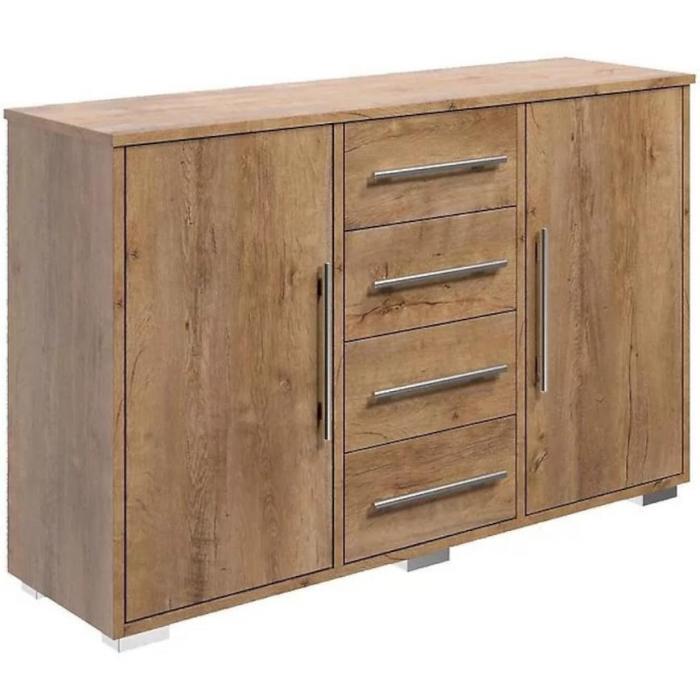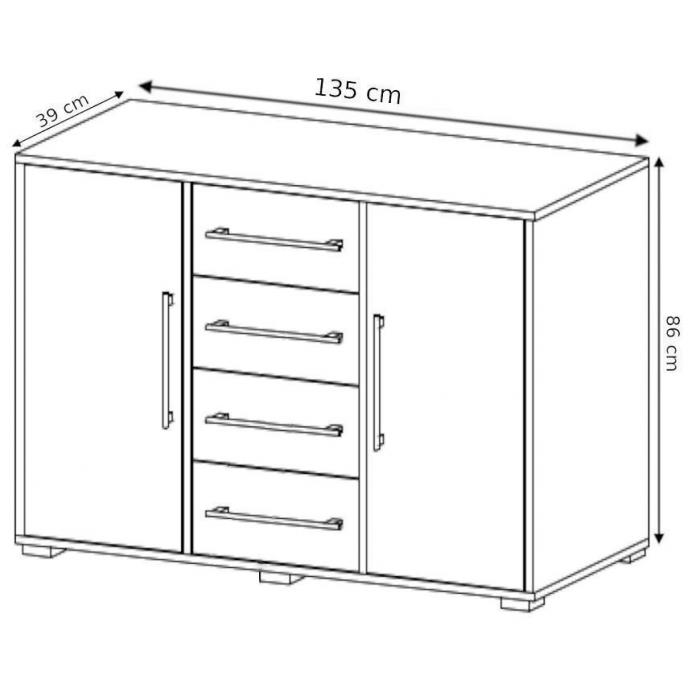 Doskonałym wyborem do pokoju dziennego będzie komoda w kolorze dąb lefkas ciemny z serii Selene, materiał wykonania to płyta laminowana. Komoda posiada drzwiczki oraz szuflady, dzięki czemu ma łatwy dostęp do wnętrza. Komoda dopełni również wystrój salonu, czy przedpokoju, stanowiąc wygodne miejsce do przechowywania mniejszych i większych rzeczy. Mebel do samodzielnego montażu.