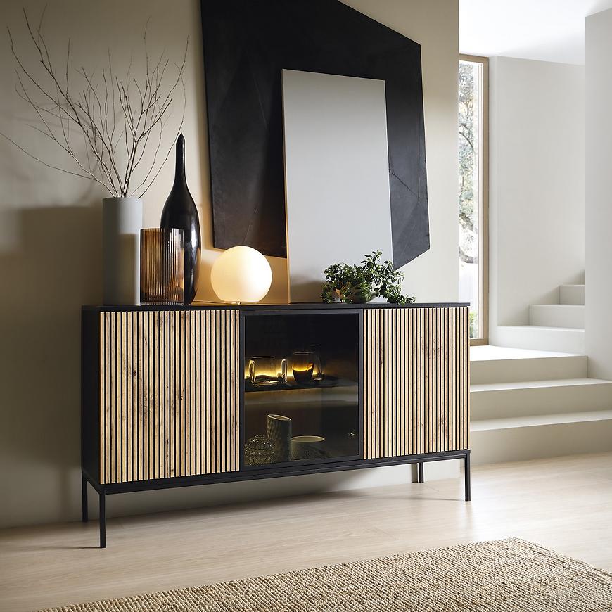 Trzydrzwiowy układ komody zapewnią miejsce do przechowywania, a dostępność oświetlenia LED w standardzie dodaje jej dodatkowego uroku, podkreślając piękno kolekcji Sento. Ten nowoczesny detal sprawia, że komoda staje się nie tylko funkcjonalnym meblem, ale również atrakcyjnym elementem dekoracyjnym w każdym pomieszczeniu.