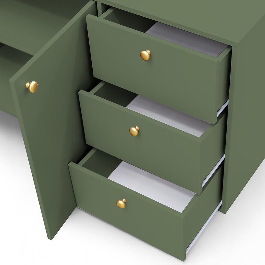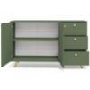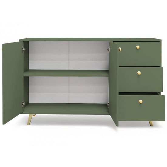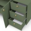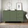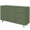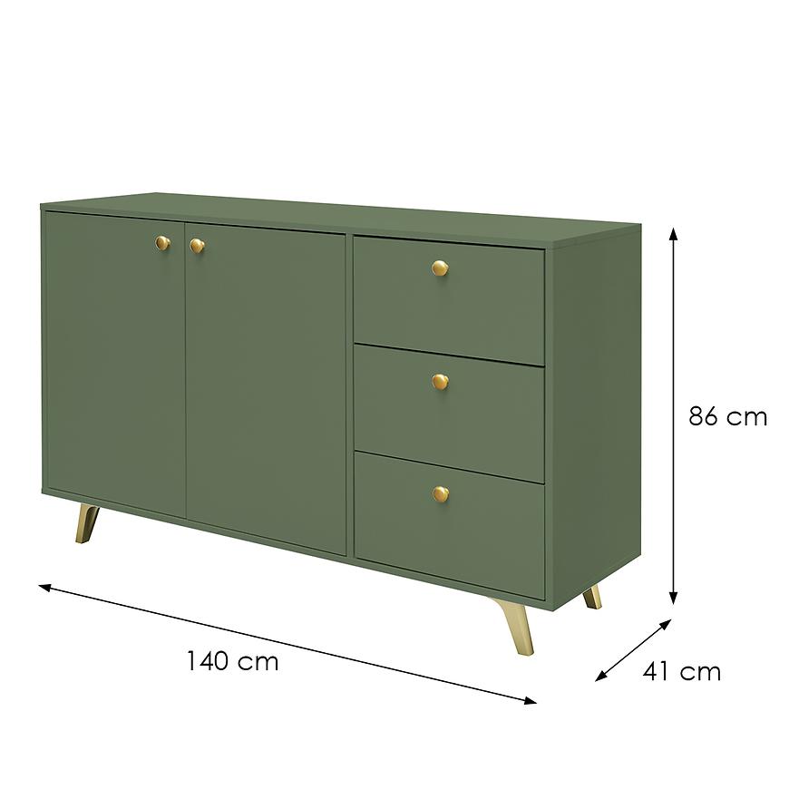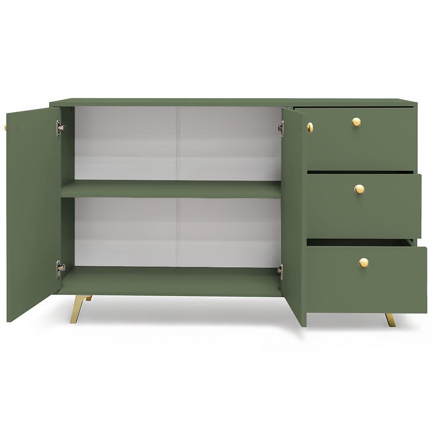 Komoda Siena w kolorze butelkowa zieleń to ponadczasowy element wystroju wnętrz, który łączy w sobie elegancję i funkcjonalność. Ta dwudrzwiowa komoda z trzema szufladami doskonale wpisuje się w klasyczny styl, nadając pomieszczeniu wyjątkowy charakter.