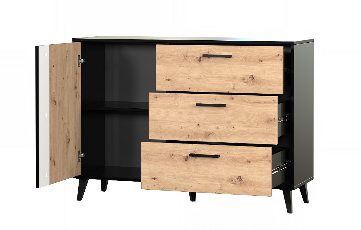 System Silves to nowoczesny system meblowy, którego uniwersalny charakter i kolorystyka pozwoli na aranżację wnętrz takich jak pokój dzienny, sypialnia, a także pokój młodzieżowy. Prosta forma, minimalistyczny design, nowoczesne zestawienie kolorów to cechy, które charakteryzują tę kolekcję. System wykonany jest z wysokiej jakości , trwałych materiałów: płyty laminowanej i MDF. Meble osadzone są na czarnych nogach wykonanych z tworzywa sztucznego, co nadaje im lekkości. Z praktycznego punktu widzenia ułatwiają także dostęp np. podczas sprzątania. Proste, duże uchwyty, również wykonane z tworzywa sztucznego, są bardzo praktyczne w użytkowaniu, ale także pełnią funkcję ozdobną. Całość świetnie się prezentuje we wnętrzach w stylu loftowym, industrialnym czy nowoczesnym.