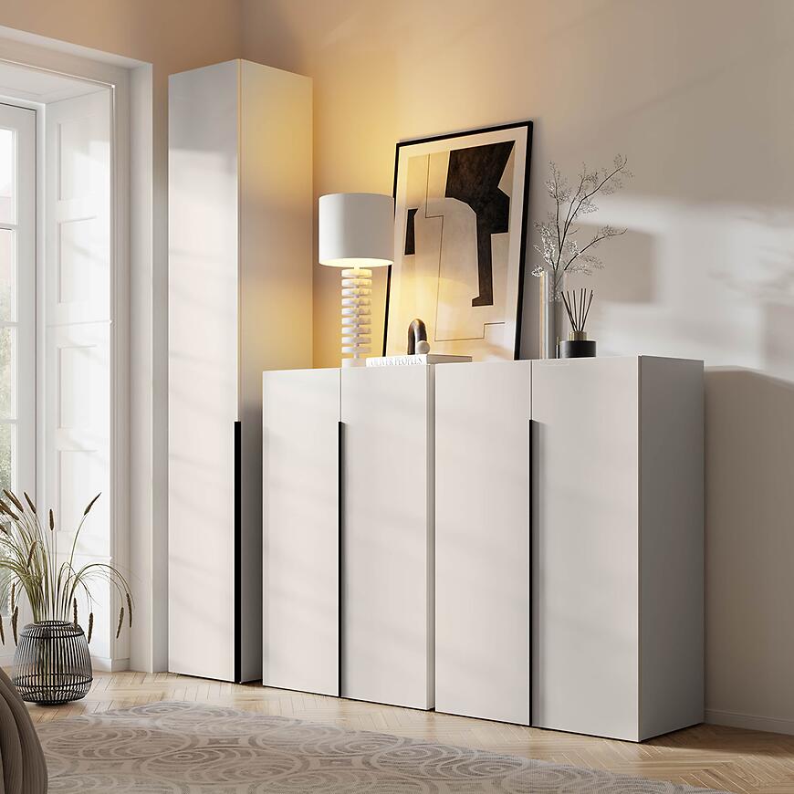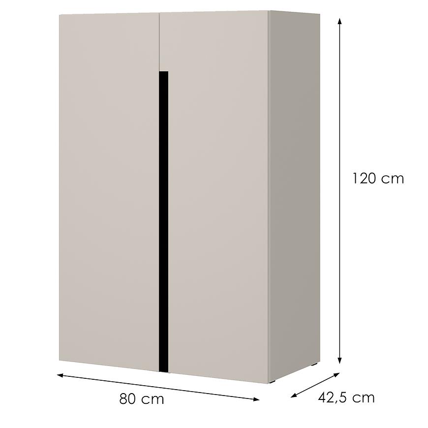 Szerokość 80 cm, wysokość 120 cm oraz głębokość 42,5 cm czynią z modelu Slim 2D S03 komodę, która z łatwością dopasuje się do różnych układów wnętrz. Taka bryła pozwala ustawić mebel przy ścianie, w ciągu z innymi elementami zabudowy lub jako samodzielny akcent aranżacyjny. Dwudrzwiowa konstrukcja umożliwia przechowywanie dokumentów, tekstyliów, akcesoriów domowych lub zastawy stołowej, zachowując estetyczny porządek w pomieszczeniu. Brak szuflad podkreśla prostą, geometryczną formę, charakterystyczną dla nowoczesnych komód do salonu.