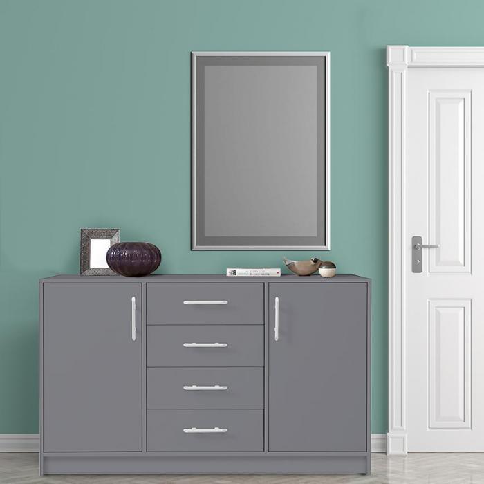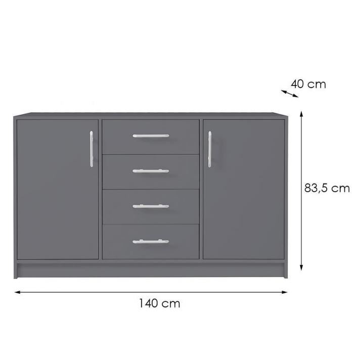 Komoda Smart to przede wszystkim nowoczesność i funkcjonalność w jednym. Mebel doskonale sprawdzi się w każdym salonie. Materiał wykonania to płyta wiórowa laminowana. Komoda posiada cztery szuflady oraz dwie szafki dzięki czemu ma łatwy dostęp do wnętrza. Wygląd mebli jest nowoczesny, a zarazem uniwersalny. Mebel będzie pasował do wielu pomieszczeń jak np. jadalni czy pokoju dziennego. Meble jest bardzo pojemny, dlatego sprawdzi się w każdym pomieszczeniu - zarówno w sypialni, pokoju dziennym, młodzieżowym, czy też salonie. Mebel do samodzielnego montażu.