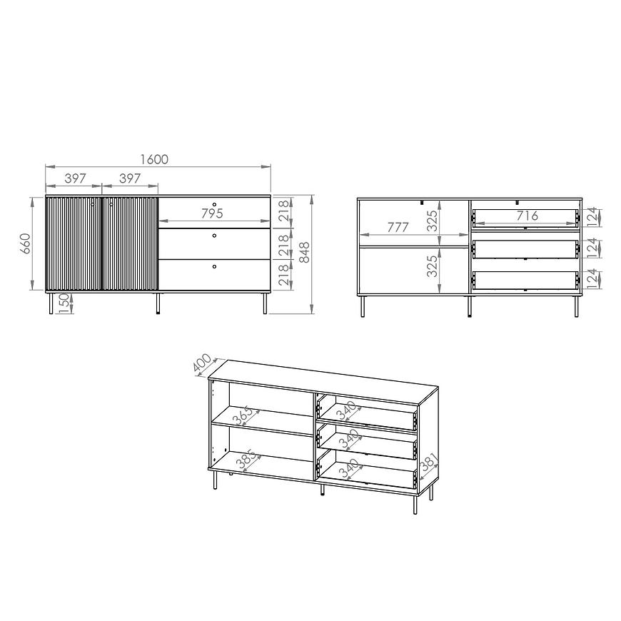Materiały: Fronty komody wykonane są z trwałej płyty MDF, co zapewnia ich wytrzymałość i odporność na uszkodzenia. Korpus wykonany z płyty wiórowej laminowanej gwarantuje stabilność i solidność konstrukcji. Matowe wykończenie dodaje komodzie nowoczesnego wyglądu i elegancji.