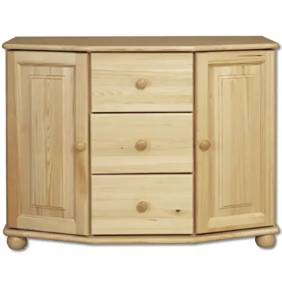 Komoda Sosnowa KD to klasyczny i elegancki mebel, który zachwyca naturalnym wyglądem oraz solidnym wykonaniem. W całości stworzona z drewna sosnowego, prezentuje surowe, jasne wybarwienie, co nadaje jej uniwersalny charakter idealnie wpisujący się w różnorodne aranżacje wnętrz. Matowe wykończenie frontów i korpusu podkreśla subtelną estetykę komody, wnosząc do pomieszczenia ciepły i przytulny klimat.