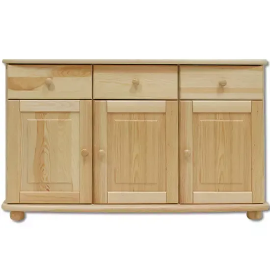 Komoda Sosnowa KD to klasyczny i elegancki mebel, który zachwyca naturalnym wyglądem oraz solidnym wykonaniem. W całości stworzona z drewna sosnowego, prezentuje surowe, jasne wybarwienie, co nadaje jej uniwersalny charakter idealnie wpisujący się w różnorodne aranżacje wnętrz. Matowe wykończenie frontów i korpusu podkreśla subtelną estetykę komody, wnosząc do pomieszczenia ciepły i przytulny klimat.