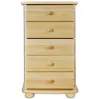 Komoda Sosnowa KD to klasyczny i elegancki mebel, który zachwyca naturalnym wyglądem oraz solidnym wykonaniem. W całości stworzona z drewna sosnowego, prezentuje surowe, jasne wybarwienie, co nadaje jej uniwersalny charakter idealnie wpisujący się w różnorodne aranżacje wnętrz. Matowe wykończenie frontów i korpusu podkreśla subtelną estetykę komody, wnosząc do pomieszczenia ciepły i przytulny klimat.