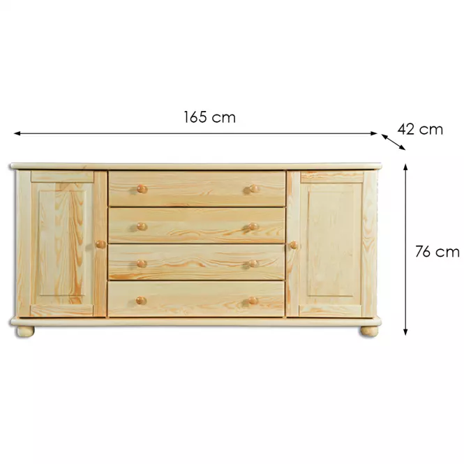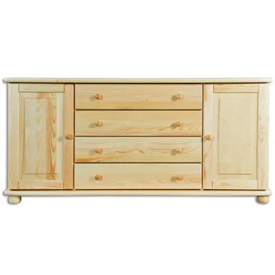 Komoda Sosnowa KD to klasyczny i elegancki mebel, który zachwyca naturalnym wyglądem oraz solidnym wykonaniem. W całości stworzona z drewna sosnowego, prezentuje surowe, jasne wybarwienie, co nadaje jej uniwersalny charakter idealnie wpisujący się w różnorodne aranżacje wnętrz. Matowe wykończenie frontów i korpusu podkreśla subtelną estetykę komody, wnosząc do pomieszczenia ciepły i przytulny klimat.