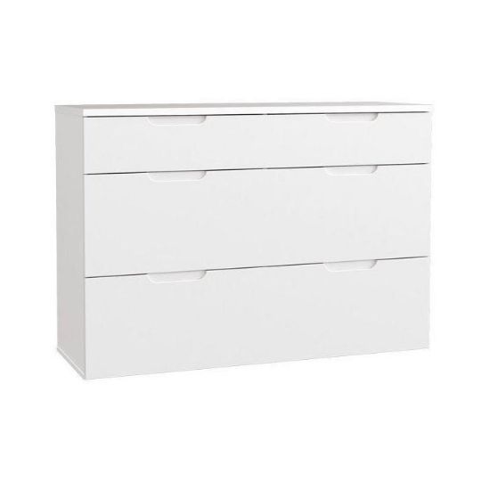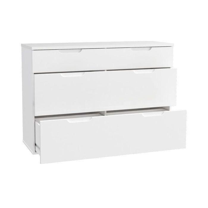 Doskonałym wyborem do pokoju dziennego będzie biała komoda z serii Starlet White. Materiał wykonania to płyta wiórowa. Komoda posiada szuflady, dzięki czemu ma łatwy dostęp do wnętrza. Komoda dopełni również wystrój salonu, czy przedpokoju, stanowiąc wygodne miejsce do przechowywania mniejszych i większych rzeczy. Mebel do samodzielnego montażu.