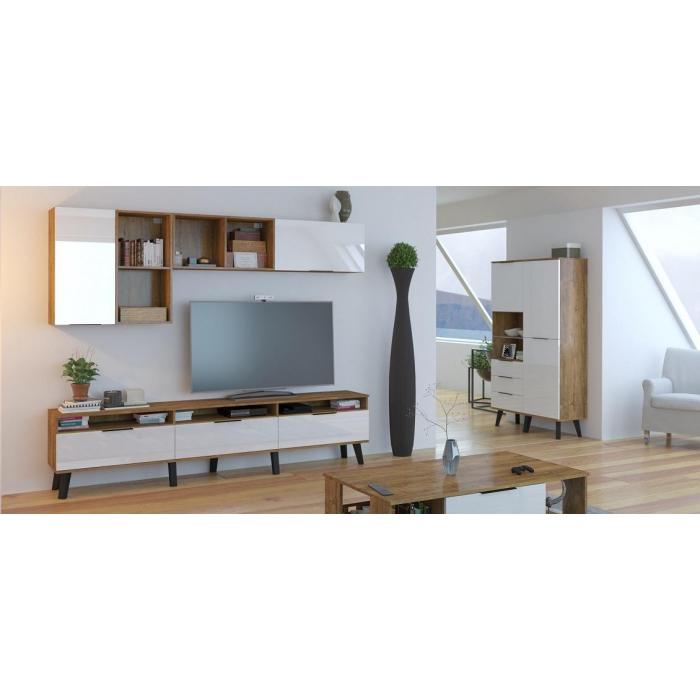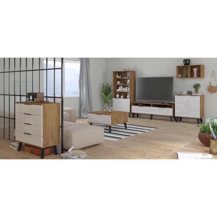 Doskonałym wyborem do pokoju dziennego będzie komoda w kolorze biały/dąb burgundzki z kolekcji Sven. Materiał wykonania to płyta laminowana. Komoda posiada drzwiczki oraz szuflady, dzięki czemu ma łatwy dostęp do wnętrza. Komoda dopełni również wystrój salonu, czy przedpokoju, stanowiąc wygodne miejsce do przechowywania mniejszych i większych rzeczy. Mebel do samodzielnego montażu.
