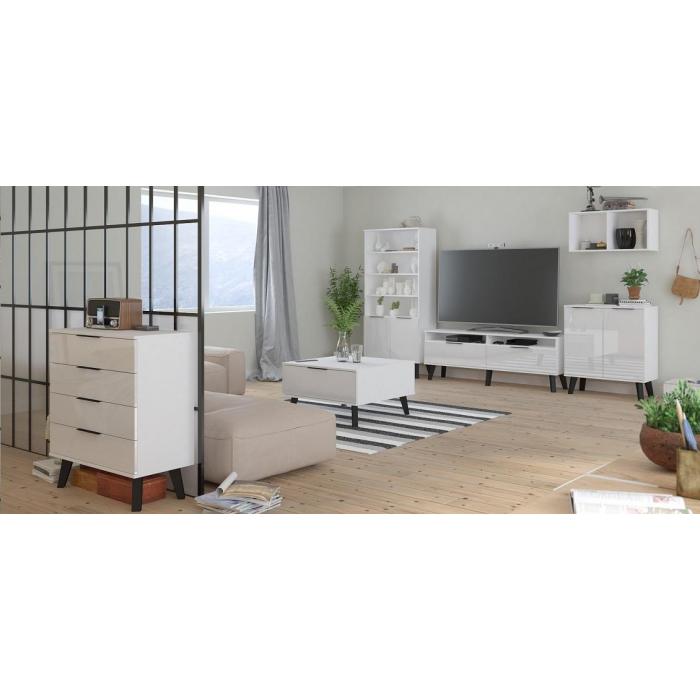 Doskonałym wyborem do pokoju dziennego będzie biała komoda z kolekcji Sven. Materiał wykonania to płyta laminowana. Komoda posiada szuflady, dzięki czemu ma łatwy dostęp do wnętrza. Komoda dopełni również wystrój salonu, czy przedpokoju, stanowiąc wygodne miejsce do przechowywania mniejszych i większych rzeczy. Mebel do samodzielnego montażu.