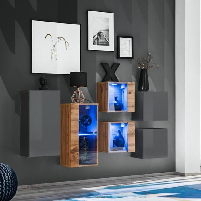 Komoda Switch w kolorze grafit/wotan to przede wszystkim nowoczesność i funkcjonalność w jednym. Mebel doskonale sprawdzi się w każdym salonie. Materiał wykonania to płyta MDF. Komoda posiada oświetlenie LED. Wygląd mebli jest nowoczesny, a zarazem uniwersalny. Mebel będzie pasował do wielu pomieszczeń jak np. jadalni czy pokoju dziennego. Meble jest bardzo pojemny, dlatego sprawdzi się w każdym pomieszczeniu - zarówno w sypialni, pokoju dziennym, młodzieżowym, czy też salonie. Mebel do samodzielnego montażu.