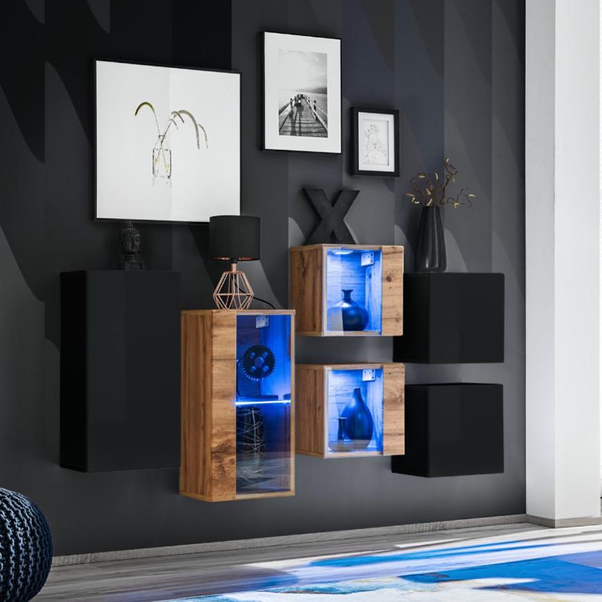 Komoda Switch w kolorze wotan/czarny to przede wszystkim nowoczesność i funkcjonalność w jednym. Mebel doskonale sprawdzi się w każdym salonie. Materiał wykonania to płyta MDF. Komoda posiada oświetlenie LED. Wygląd mebli jest nowoczesny, a zarazem uniwersalny. Mebel będzie pasował do wielu pomieszczeń jak np. jadalni czy pokoju dziennego. Meble jest bardzo pojemny, dlatego sprawdzi się w każdym pomieszczeniu - zarówno w sypialni, pokoju dziennym, młodzieżowym, czy też salonie. Mebel do samodzielnego montażu.