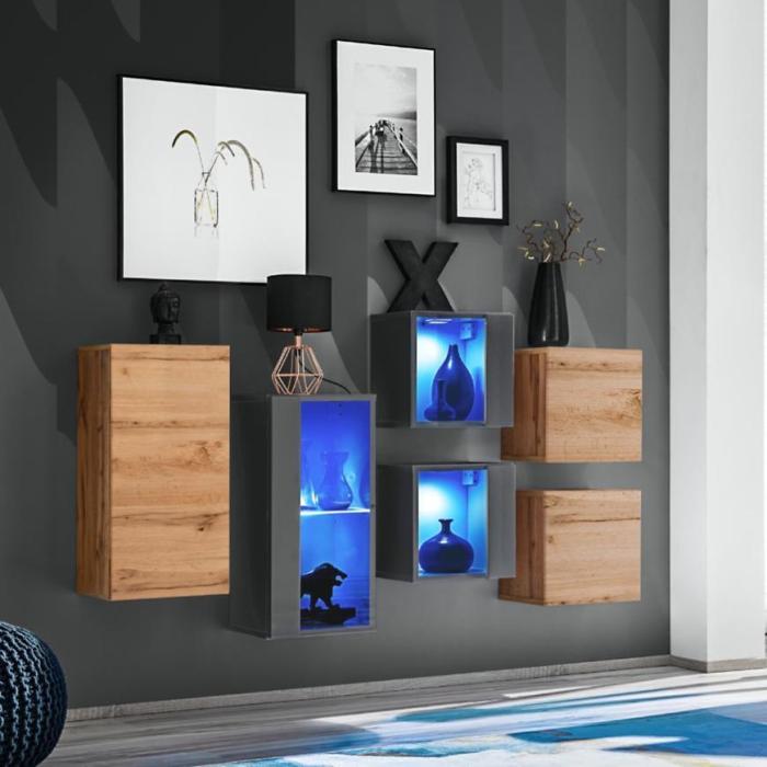 Komoda Switch w kolorze wotan/grafit to przede wszystkim nowoczesność i funkcjonalność w jednym. Mebel doskonale sprawdzi się w każdym salonie. Materiał wykonania to płyta MDF. Komoda posiada oświetlenie LED. Wygląd mebli jest nowoczesny, a zarazem uniwersalny. Mebel będzie pasował do wielu pomieszczeń jak np. jadalni czy pokoju dziennego. Meble jest bardzo pojemny, dlatego sprawdzi się w każdym pomieszczeniu - zarówno w sypialni, pokoju dziennym, młodzieżowym, czy też salonie. Mebel do samodzielnego montażu.
