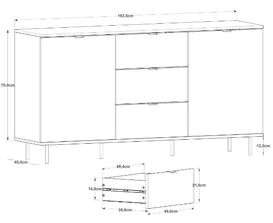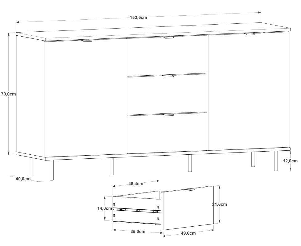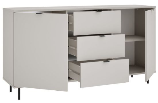 Kompaktowe wymiary 153,5×40×82,6 cm sprawiają, że komoda Galia 2D3S Typ 2 doskonale sprawdzi się w salonie, sypialni czy przedpokoju, oferując praktyczne i estetyczne miejsce do przechowywania. Matowe wykończenie minimalizuje widoczność odcisków palców i ułatwia utrzymanie mebla w czystości, a solidna konstrukcja o wadze 51 kg gwarantuje stabilność i trwałość przez wiele lat użytkowania. Komoda wymaga samodzielnego montażu, co pozwala na wygodne wniesienie i ustawienie jej w dowolnym miejscu.