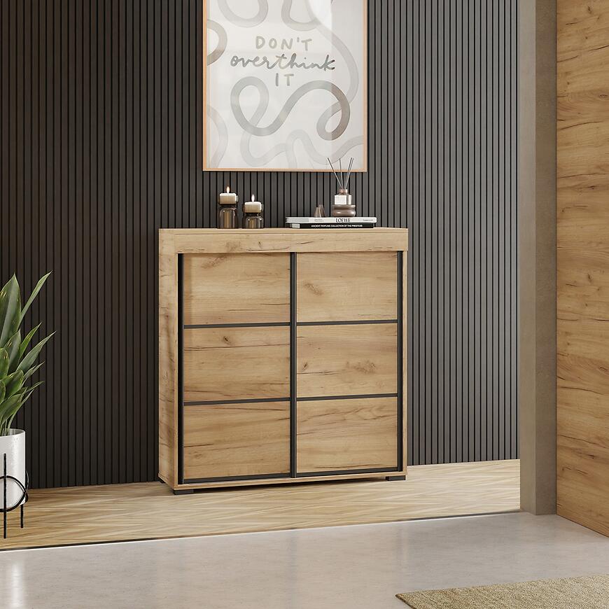 Komoda Tanger 80 Dąb Craft Złoty to połączenie nowoczesnej formy z naturalnym, drewnopodobnym wybarwieniem. Dekor dąb craft złoty nadaje meblowi ciepłego, przytulnego charakteru, a jednocześnie zachowuje minimalistyczny styl charakterystyczny dla kolekcji TANGER. Jasna kolorystyka inspirowana naturalnym drewnem sprawia, że komoda prezentuje się elegancko i ponadczasowo.