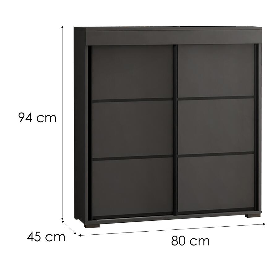 Dwudrzwiowa konstrukcja komody Tanger 80 Grafit zapewnia wygodny dostęp do wnętrza i umożliwia przechowywanie różnorodnych przedmiotów. Zamykane fronty pomagają zachować porządek i elegancki wygląd. Wymiary mebla – szerokość 80 cm, wysokość 94 cm i głębokość 45 cm – gwarantują optymalną pojemność przy zachowaniu kompaktowych proporcji.