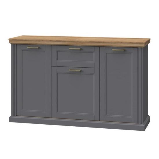 Komoda Tara w kolorze graphite/pacific walnut to przede wszystkim nowoczesność i funkcjonalność w jednym. Mebel doskonale sprawdzi się w każdym salonie. Materiał wykonania to płyta wiórowa laminowana. Komoda posiada jedną szufladę i trzy szafki dzięki czemu ma łatwy dostęp do wnętrza. Wygląd mebli jest nowoczesny, a zarazem uniwersalny. Mebel będzie pasował do wielu pomieszczeń jak np. jadalni czy pokoju dziennego. Meble jest bardzo pojemny, dlatego sprawdzi się w każdym pomieszczeniu - zarówno w sypialni, pokoju dziennym, młodzieżowym, czy też salonie. Mebel do samodzielnego montażu.