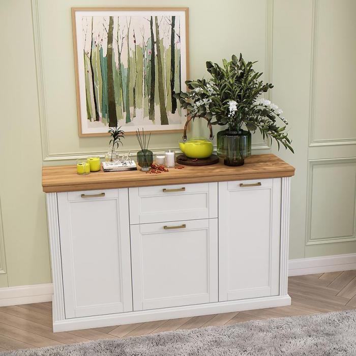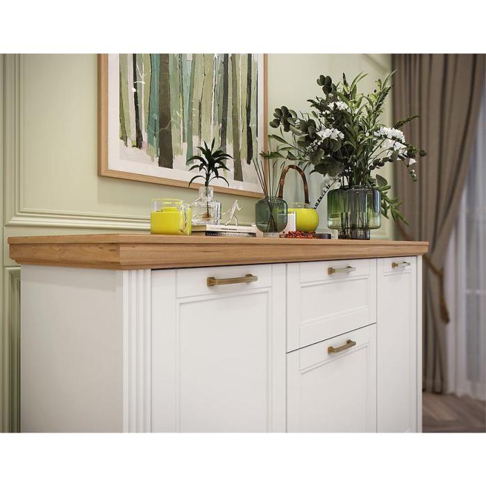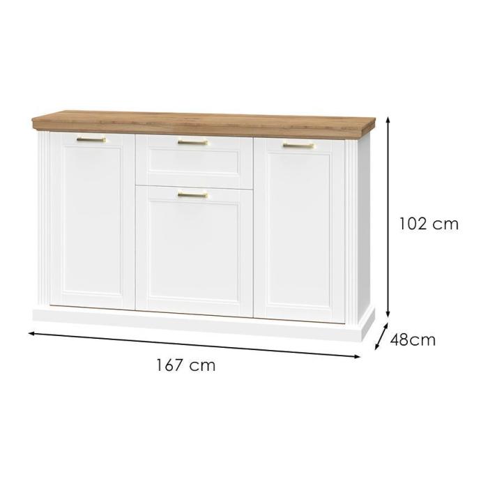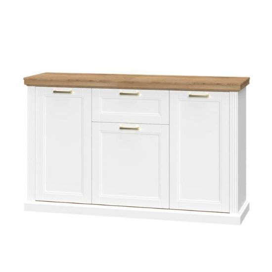 Komoda Tara w kolorze white/pacific walnut to przede wszystkim nowoczesność i funkcjonalność w jednym. Mebel doskonale sprawdzi się w każdym salonie. Materiał wykonania to płyta wiórowa laminowana. Komoda posiada jedną szufladę i trzy szafki dzięki czemu ma łatwy dostęp do wnętrza. Wygląd mebli jest nowoczesny, a zarazem uniwersalny. Mebel będzie pasował do wielu pomieszczeń jak np. jadalni czy pokoju dziennego. Meble jest bardzo pojemny, dlatego sprawdzi się w każdym pomieszczeniu - zarówno w sypialni, pokoju dziennym, młodzieżowym, czy też salonie. Mebel do samodzielnego montażu.