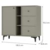 Matowe wykończenie frontów i korpusu podkreśla elegancki, a zarazem subtelny charakter mebla, który harmonijnie wpisuje się w nowoczesne aranżacje wnętrz. Konstrukcja komody wykonana jest z trwałej płyty wiórowej laminowanej, co zapewnia jej solidność i odporność na uszkodzenia. Fronty również wykonane z laminowanej płyty wiórowej dodają komodzie wytrzymałości, jednocześnie zachowując estetyczny, matowy wygląd, który jest łatwy do utrzymania w czystości.