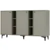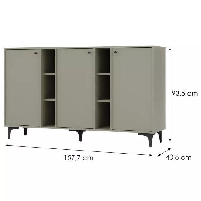 Komoda wyposażona jest w trzydrzwiowy system zamknięcia, co pozwala na wygodne przechowywanie większych przedmiotów oraz zachowanie porządku w pomieszczeniu. Przestronne wnętrze komody umożliwia efektywne uporządkowanie różnorodnych rzeczy. Dzięki temu, że komoda Tokyo jest zaprojektowana z myślą o maksymalnym wykorzystaniu przestrzeni, stanowi idealne rozwiązanie zarówno dla mniejszych, jak i większych pomieszczeń.
