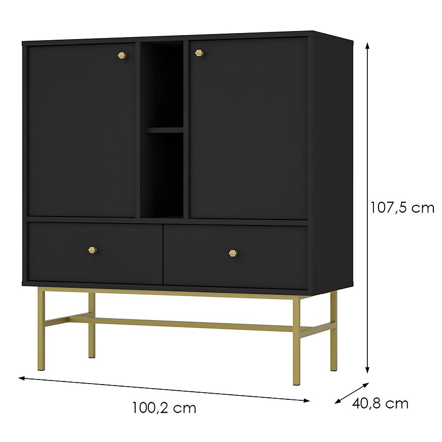 Pomimo niewielkich rozmiarów, komoda oferuje dużą pojemność. Dwie szuflady zapewniają odpowiednią przestrzeń do przechowywania, idealną do organizacji mniejszych przedmiotów, takich jak akcesoria czy bielizna. Dwie jednodrzwiowe szafki pozwalają na przechowywanie większych rzeczy, takich jak książki, dokumenty lub odzież. Praktyczny układ wnętrza komody zapewnia wygodę użytkowania i sprawia, że wszystkie niezbędne przedmioty są zawsze pod ręką.