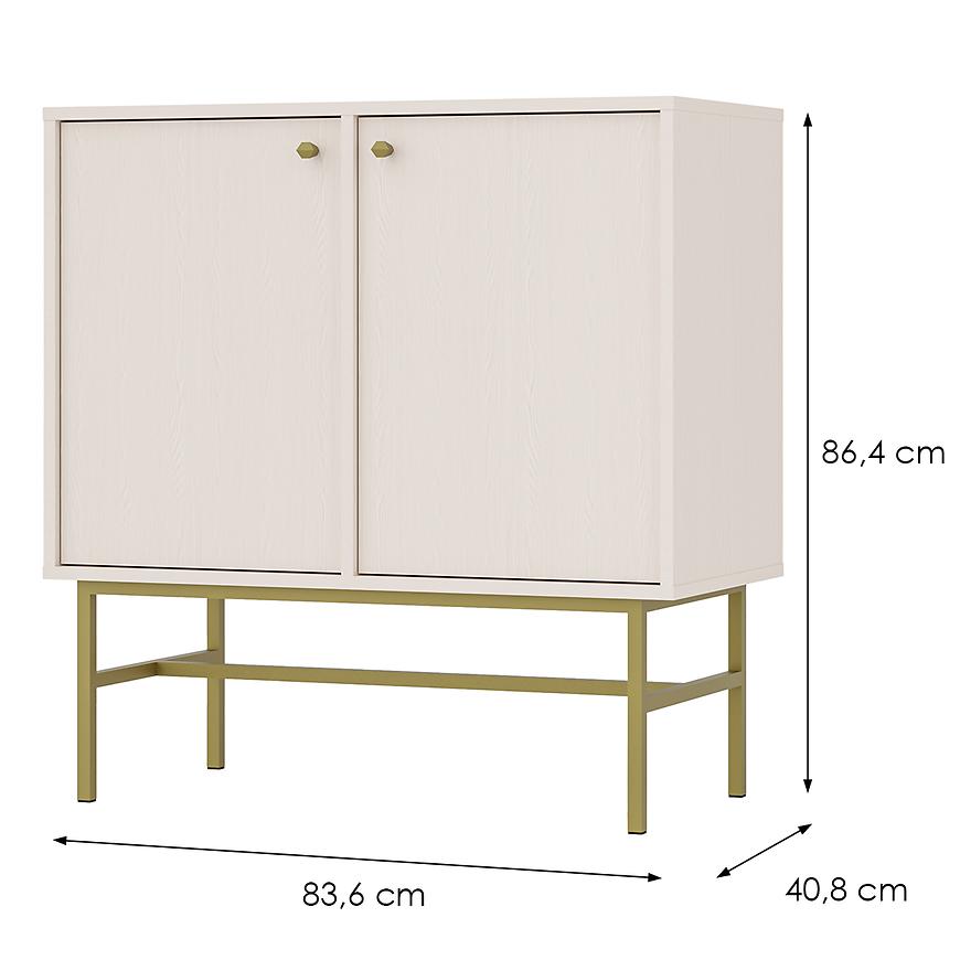 Dzięki dwudrzwiowej konstrukcji, wnętrze komody oferuje sporo przestrzeni do przechowywania różnych przedmiotów, takich jak ubrania, dokumenty, książki czy akcesoria domowe. Komoda jest przy tym bardzo stabilna, a jej lekka waga ułatwia ustawienie mebla w dowolnym miejscu. Kompaktowy rozmiar i praktyczne rozwiązania sprawiają, że jest to idealny wybór zarówno do mniejszych, jak i większych pomieszczeń, gdzie dodatkowa przestrzeń do przechowywania jest zawsze mile widziana.