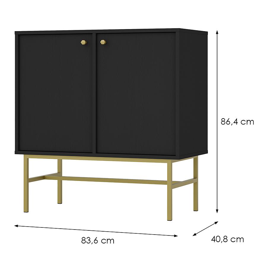 Dzięki dwudrzwiowej konstrukcji, wnętrze komody oferuje sporo przestrzeni do przechowywania różnych przedmiotów, takich jak ubrania, dokumenty, książki czy akcesoria domowe. Komoda jest przy tym bardzo stabilna, a jej lekka waga ułatwia ustawienie mebla w dowolnym miejscu. Kompaktowy rozmiar i praktyczne rozwiązania sprawiają, że jest to idealny wybór zarówno do mniejszych, jak i większych pomieszczeń, gdzie dodatkowa przestrzeń do przechowywania jest zawsze mile widziana.