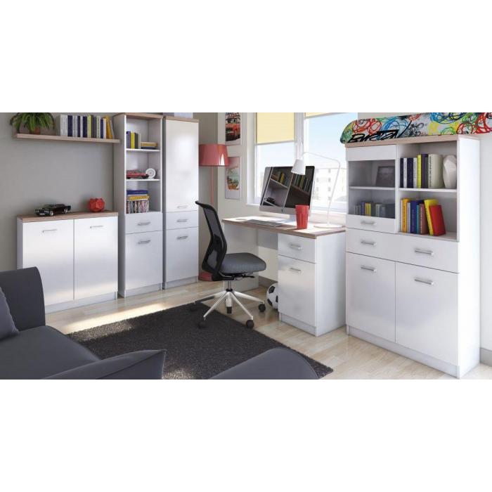 Doskonałym wyborem do pokoju dziennego, dziecięcego, czy młodzieżowego będzie biła komoda z serii Tom, materiał wykonania to płyta laminowana. Komoda posiada drzwiczki, szuflady i półki, dzięki czemu ma łatwy dostęp do wnętrza. Komoda dopełni również wystrój salonu, czy przedpokoju, stanowiąc wygodne miejsce do przechowywania mniejszych i większych rzeczy. Mebel do samodzielnego montażu.